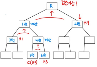 - Hash = 총 4개 ( 검증하고자 하는 트랜잭션 Hash 1개 + 검증에 필요한 트랜잭션 Hash 3개 )
