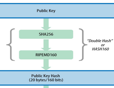 SHA256, RIPEMD160 을 거쳐 160-bit 의 해시 값을 얻는 과정