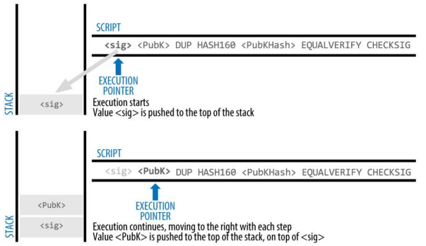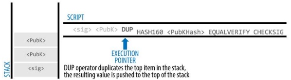 - OP_DUP, OP_HASH160, OP_EQUALVERIFY, …