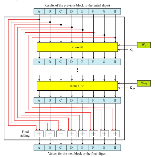 - SHA-512 에서는 round 수를 80으로 고정, 각 round 마다 사용될 80개의 word가 필요함