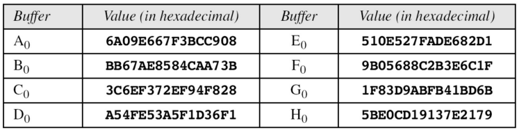 - SHA-512 : \(H_{0}=512bits=64bits*8=8word\)