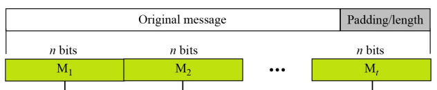 - 원본 메시지를 n-bit 크기의 블록으로 분할
