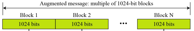 - 원본 메시지를 1024-bit 크기의 블록으로 분할